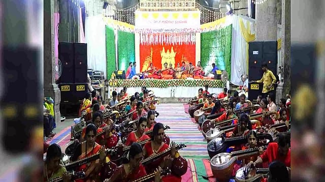 MADURAI: On the occasion of Vijayadashami, 108 women played veena at the world-renowned Madurai Meenakshi Amman temple. The connoisseurs watched in delight as the performers played in unison and soothing Carnatic music reverberated in the concert hall.