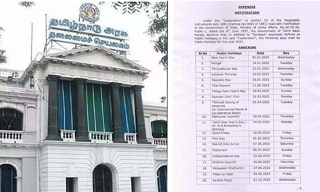 CHENNAI: : With three holidays each on Mondays and Fridays, five on Thursdays, and three on Tuesdays, the State government employees and staff of all commercial banks, including cooperative banks, are in for a bounty of long (and longer) weekends in 2025.