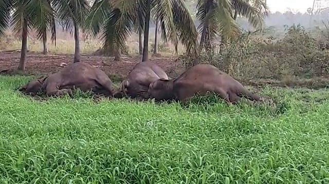 The three female elephants were spotted dead by a team of anti-depredation squad at Kali Kavundar Kottai village in Kendanahalli near the reserve forest area. The forest team was tracking the elephant herd, when they lost sight for a while and soon found them lying dead due to electrocution.