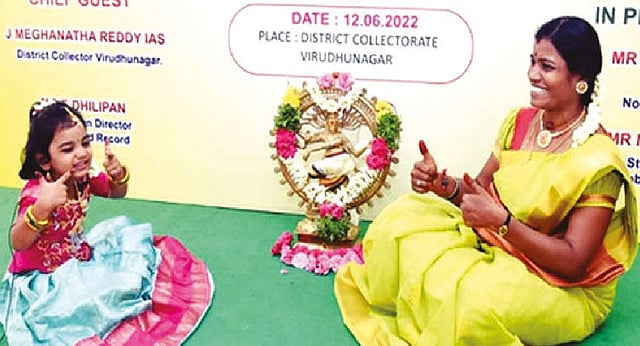 MADURAI: A three-year-old girl J Mira Aravinda from Virudhunagar has set a new Noble World Record after she recited 56 dance Mudras and nine rasas –(The Nine Emotions) in the Indian Classical dance tradition.