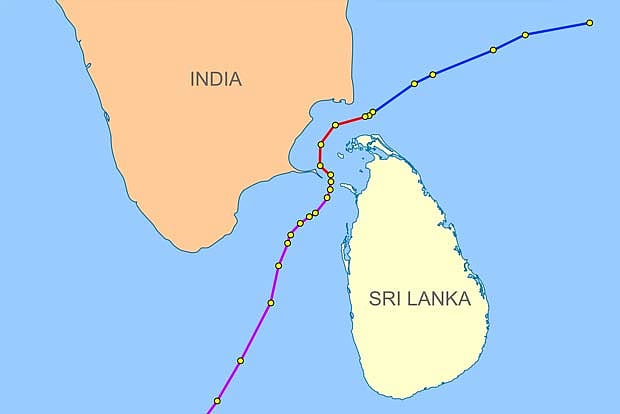 On being alerted by the surveillance helicopter, the Indian Navy detained and brought them to Dhanushkodi along with the boat.Later, they were handed over to the Coastal Security Group (CSG) of Tamil Nadu Marine Police for further legal action.Preliminary investigations revealed that all the five men hailed from Thalaimannar in Sri Lanka.