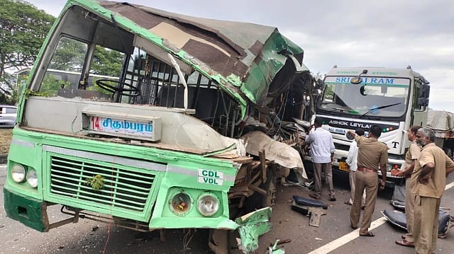 Around 7 am when the bus was speeding on the National Highway near Acharapakkam, the bus driver who lost control of the vehicle collided with the lorry which was parked on the roadside.