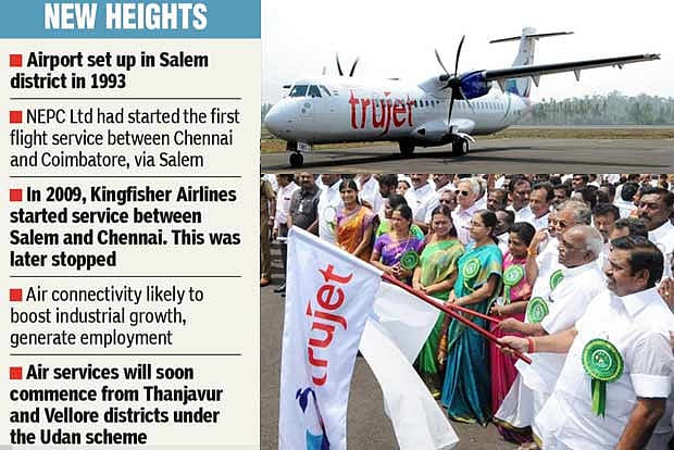 In the past several years, business groups have been demanding air link between Salem and other major cities. “People living in Salem, Erode, Namakkal, Karur, Krishnagiri and Dharmapuri will benefit from the direct service to Chennai,” the CM said.