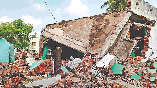 In the impact, a portion of the house collapsed. On hearing the noise, the neighbours ran to the spot and rescued Rasathi who was trapped in the debris and rushed her to the Thanjavur Medical College hospital where she is undergoing treatment in the intensive care unit.