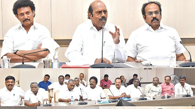 Following this, Minister for School Education Anbil Mahesh Poyyamozhi, Industries Minister Thangam Thennarasu and Minister for Public works, Highways and Minor Ports EV Velu held a meeting with State coordinators of JACTO-GEO on Saturday.