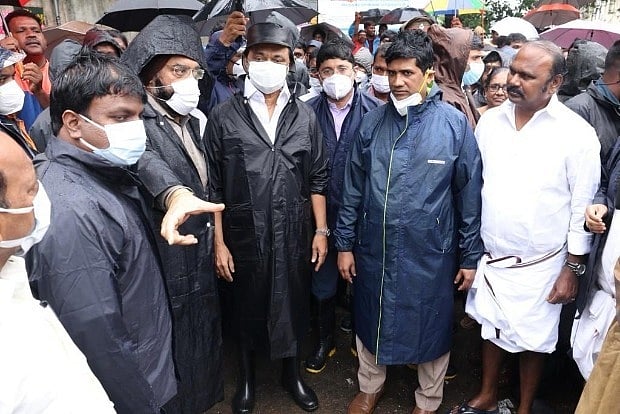 On Wednesday, Stalin hit the water-logged Chennai roads to inspect the damage and relief work.