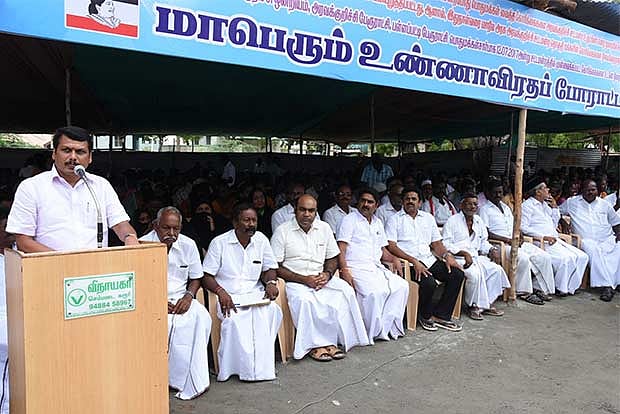 Speaking to the media on the sidelines of a protest, Senthil Balaji said Chief Minister Edappadi Palaniswami was working for the Aravakurichi segment and gave a series of promises to the people but nothing has been fulfilled. He charged that Thambidurai stayed in Chennai on all 70 days of late Chief Minister J Jayalalithaa’s hospitalisation. “He was there to get the CM’s seat but that did not materialise,” said Senthil Balaji.