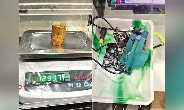 They suspected the movement of a passenger and took him to a separate place. The officials conducted an inquiry and found that he had concealed the yellow metal weighing 1.299 kg inside a tile-cutting machine.