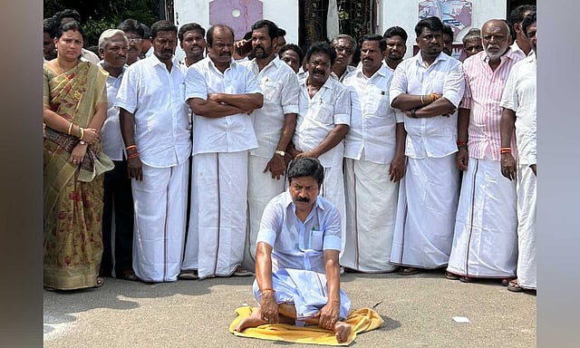 CHENNAI: Former AIADMK minister C Ve Shanmugam resorted to a sit-in protest in front of the Villupuram Collectorate condemning the alleged inaction of the district police on his complaints on what he claimed as false social media information over VCK’s Kallakurichi anti-liquor conference.