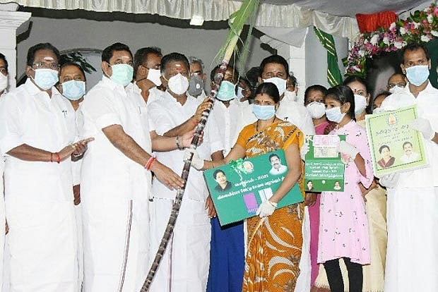 According to DMK, the tokens listing the date and time for receipt of Pongal gifts from the ration shops are distributed by AIADMK members. Pictures of Palaniswami and other ministers give an impression that the hampers were gifts from the ruling AIADMK and not the state government, the DMK added.