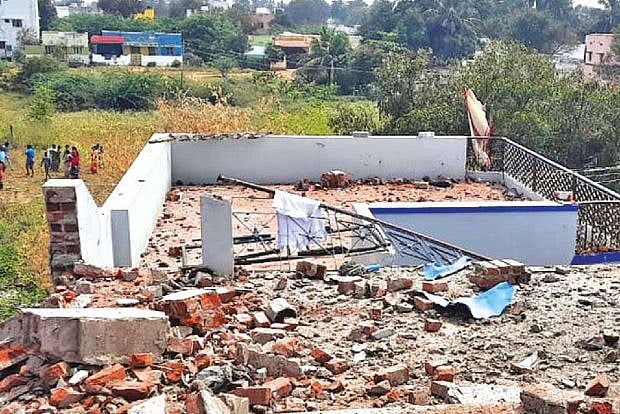 The deceased has been identified as D Ajith, a resident of Thengalpatti village, Checkanurani. The blast occurred around 11 am in the house, where crackers and explosive substances were stocked illegally at Nalliveeranpatti, sources said.