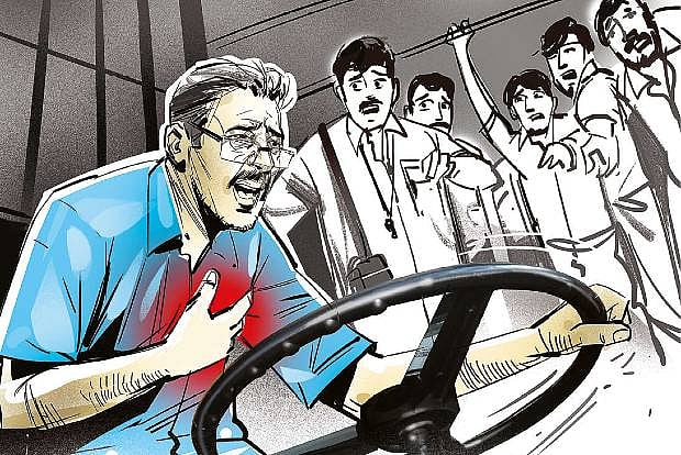 Official sources said the deceased driver M Arumugham, was driving a bus from Arappalayam bus stand in Madurai to Kodaikkanal hills, when he suffered chest pain a few minutes into the trip.