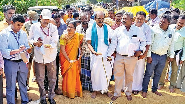 Banumathi, a farmer from Kalvirayanpettai said, “We have been witnessing rains during the kuruvai season for the past few years and the harvested paddy gets drenched. The DPC staff refuse to procure them citing increased moisture condition hence it is necessary that the 22% moisture condition be allowed.” Swamimalai Sundara Vimalnathan, Secretary Tamil Nadu Farmers Protection Association submitted a petition to the team as well. The team members later told the farmers that the samples would be tested at FCI and a report would be submitted to the Centre. They also inspected paddy in Tiruvarur, Mayiladuthurai and Nagapattinam districts.