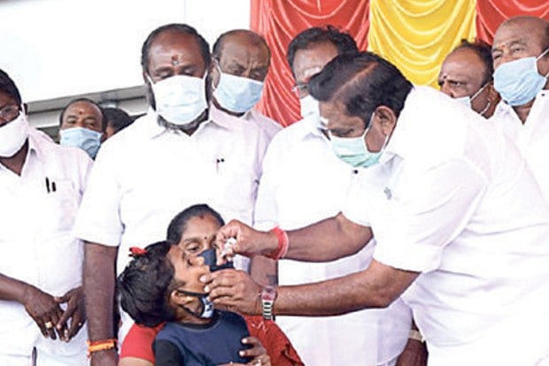 At Amma Tirukovil in T Kunnathur near Tirumangalam, Minister Udhayakumar inaugurated the polio drive in the presence of Madurai Collector T Anbalagan. Udhayakumar said 3,16,916 children across the district would be covered under this drive.