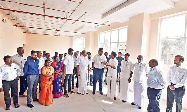 Inspecting the ongoing construction works of the Tidel Park at Mela Vasthachavadi in Thanjavur, Minister Rajaa said, the Tidel Park has been constructed in an area of 55,000 sq ft at an estimated cost of Rs 27.13 crore, which would come up as a four storeyed building. A total area of 3.40 acre land was allocated for the park.