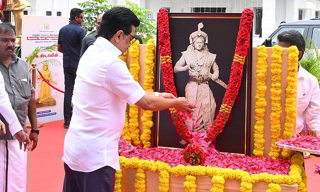 CHENNAI: Tamil Nadu Chief Minister M K Stalin unveiled a statue of freedom fighter Queen Velu Nachiyar, hailed as 'Veera mangai' (valorous lady) and India's first woman freedom fighter, at the Gandhi Mandapam Complex in Guindy, here on Friday.