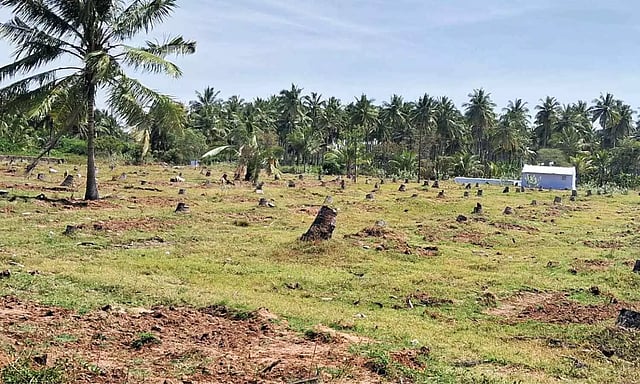 “I am extremely worried as I have to remove hundreds of trees. They all are above 40 years and in their prime yielding phase. Because of the disease, the lifespan of a coconut tree, which is up to 80 years, has been cut short drastically and overall yield has dropped by 40 per cent in my farm,” said Murugaraj, who owns a coconut grove spread over 100 acres in Sirukalandai village.