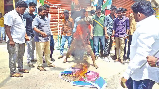 TIRUCHY: Members of the Tamil Nadu Youth Congress staged a protest here on Tuesday and burnt the portrait of Naam Tamilar Katchi (NTK) chief Seeman condemning his comment against former Prime Minister Rajiv Gandhi.