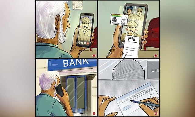 In March-April 2025, an elderly couple from Chennai was cheated of Rs 2.27 crore by fraudsters who made them appear on video call for several days in the guise of ‘virtual court proceedings’ and made them visit the bank in person to transfer their life savings to the fraudsters' accounts