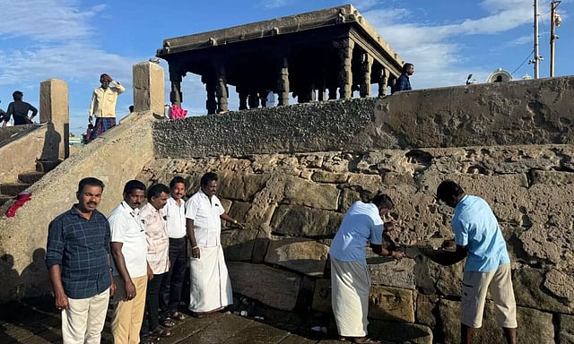 CHENNAI: Following repeated requests from devotees visiting the legendary Triveni Sangamam where the Indian Ocean, Bay of Bengal, and Arabian Sea converge, the district administration has commenced work to renovate the steps leading into the waters.