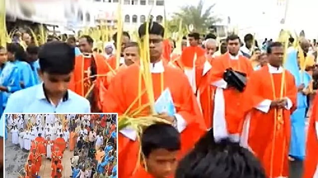 CHENNAI: Ahead of the Easter weekend, Christians took the 'Palm sunday' procession at the popular pilgrim site --- Basilica of Our Lady of Good Health in Nagapattinam's Velankanni. Thousands of pilgrims took part in the procession, singing hymns while carrying palm leaves.