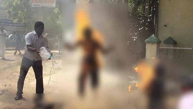 Sources said Ravichandran (56), a differently abled person from Orathanadu in Thanjavur, who came to the office of the Azhivaical VAO, staged a protest demanding the officials to prevent the sale of illicit liquor in his locality. He claimed that the liquor was being sold even as early as 4 am in the locality.
