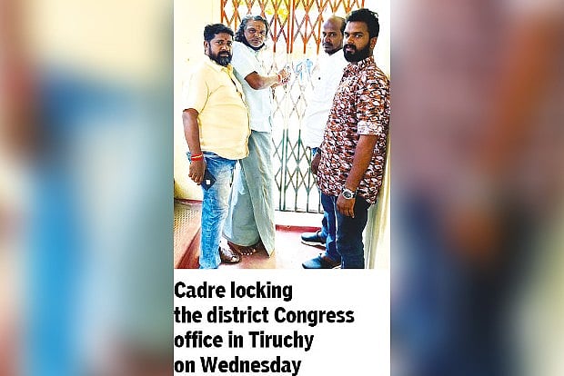 On Wednesday, a group of cadres who came to Arunachala Mandram, the party district headquarters were upset as the office wore a deserted look without even the party district presidents while the other political offices were abuzz with activities for the urban body elections. The irate cadre who raised slogans against Urban District Congress Committee president Jawahar for his absence in the office locked the office and left the place.