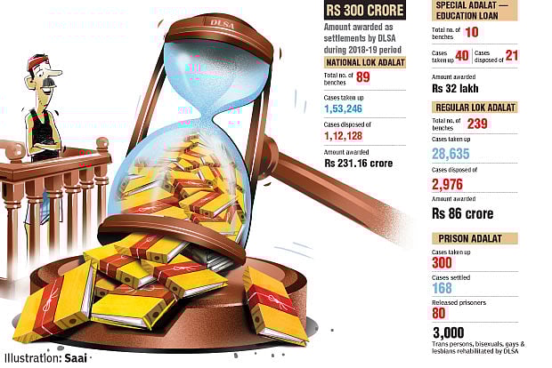 The District Legal Services Authority (DLSA) — which is providing free legal services to ensure that justice is not denied to the poor and the differently-abled, as well as extending its hand in rescuing, rehabilitating and repatriating the victims of human trafficking — has disposed of a record number of cases and awarded over Rs 300 crore as settlements in Lok Adalats held during 2018-2019 period.