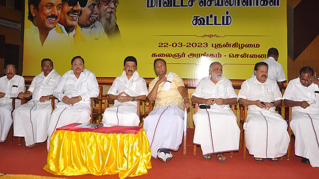 The district secretaries meeting resolved it was "befitting" that the late party chief's centenary celebrations came at a time when the party's inclusive "Dravidian model of governance" had attracted national attention.