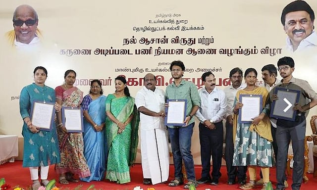 He also presented ‘Nal Aasan’ award to college principals and teachers who have received high pass percentage, and issued appointment orders to five persons on compassionate grounds. “Beside inculcating knowledge, teachers also provided guidance to develop the virtues of students. They also provided education according to the curriculum, and introduced innovative educational methods,” read the department circular.