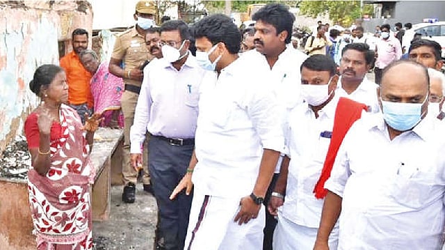 TIRUCHY: An ex-serviceman, who suffered burns in a fire that broke out in a garbage yard and spread to nearby houses on Monday, died despite treatment on Tuesday. Minister Anbil Mahesh Poyyamozhi visited the victim’s family members and consoled them and distributed relief materials.