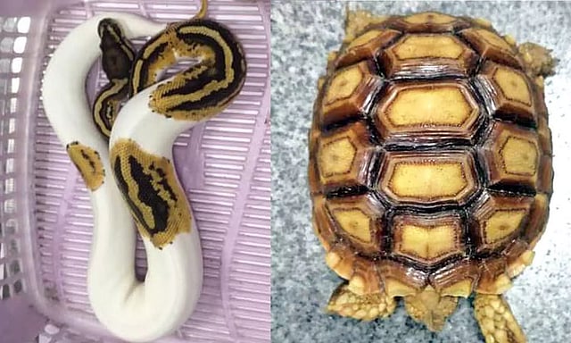 COIMBATORE: The Directorate of Revenue Intelligence (DRI) officials seized exotic species of tortoises, snake, chameleon and spider smuggled by three passengers from Singapore.