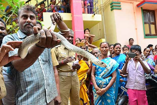 Though rescue personnel reached the house an hour before Saravanan, they were hesitant in catching the snake. However, Saravanan caught it with his bare hands. After his successful ‘mission’, neighbours rushed to meet Saravanan and get his mobile number to contact him if any future need arises.