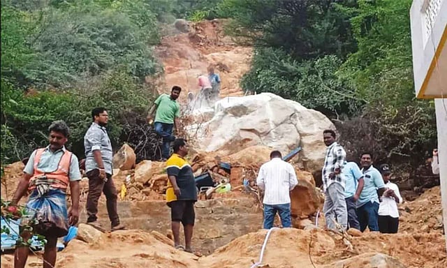 In the VOC Nagar area, seven people, including five children, tragically lost their lives after being buried under the boulders.