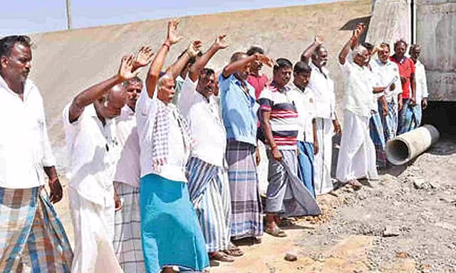 Members of several other organisations including lorry owners association, bus owners and other associations took part in the protest to highlight their plight. They raised slogans against setting up the toll gate. Esan Murugasamy, founder of Tamil Nadu Farmers Protection Association said that if the proposal to set up a toll gate is not dropped, the farmers and villagers will resort to a huger protest next month.