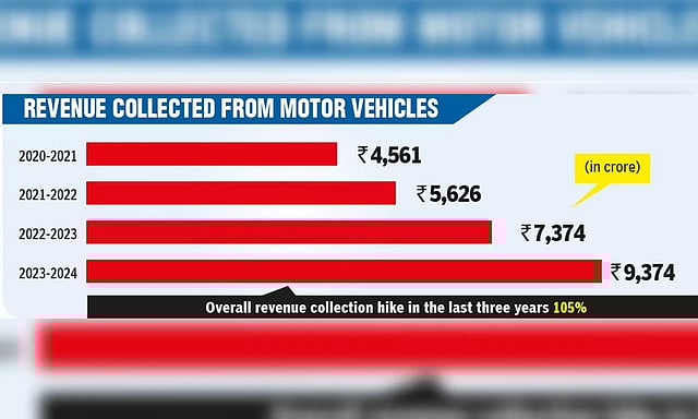 New vehicle registrations increased to 18.88 lakh in 2023-24 from 17.35 lakh in 2022-23, a nearly 9 per cent rise. However, the revenue collection has increased by roughly 25 per cent to Rs 9,374 crore in 2023-24 from Rs 7,374 crore in 2022-23.