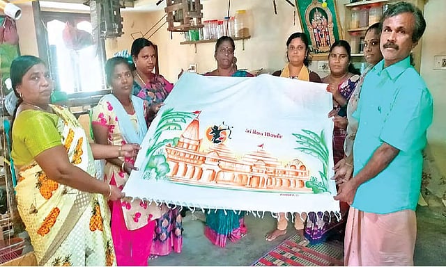 Sekar from the association, a third-generation weaver, told DT Next, “Our speciality is using eco-friendly materials and coming up with innovative garments. We wanted to adorn Sita with a handcrafted saree as a token of respect and love. This is a moment of pride and happiness for our entire cluster. The banana fibre saree has colourful prints of the Ram Mandir, with a silhouette of Lord Ram. ‘Sri Ram Mandir’ is also written on the fabric. The saree reached Ayodhya yesterday through Brahma Yoga Nandha guruji from a Ram Temple in Medavakkam.”