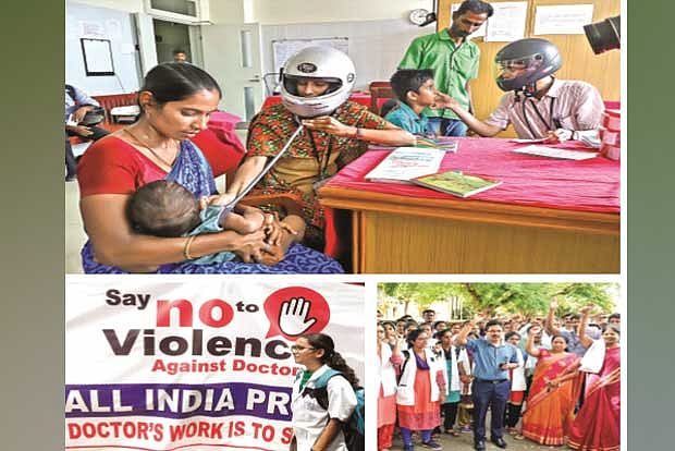 A group of doctors staged a protest in front of the Tirupur railway junction. In Namakkal, the doctors staged a protest by wearing a helmet, while in Krishnagiri the protesting doctors took a rally wearing black badges and in Erode around 950 doctors working in 450 private hospitals stayed off work.