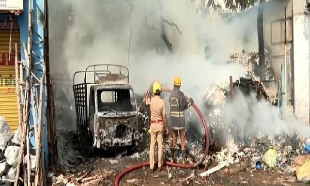 MADURAI: A fire broke out at a paper godown near the Vaigai South Bank area in Madurai, Tamil Nadu, on Wednesday.