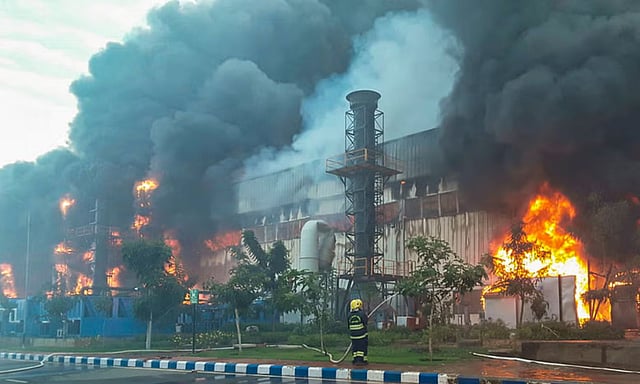 The blaze, purportedly triggered due to an electrical short circuit on Wednesday night, gutted down the logs stored in the depot, a fire department official said.