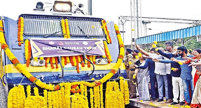 COIMBATORE: The first train to be operated between Coimbatore and Shirdi by a private operator under Bharat Gaurav Scheme of the Indian Railways chugged off from Coimbatore North railway station on Tuesday.