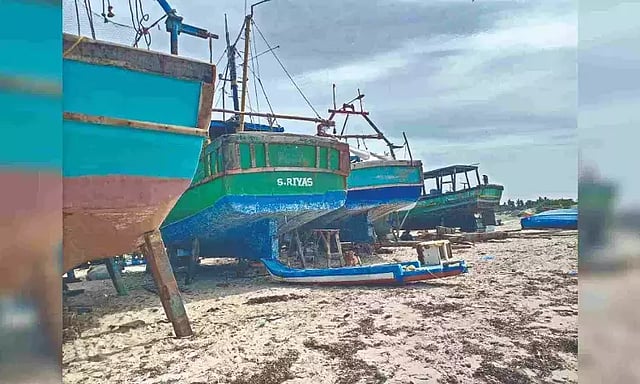 In view of the protest, the fishermen kept away from venturing into the waters since morning and kept their boats and coracles idle and overturned along the shore.