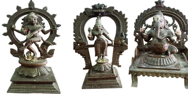 The seized idols are: metal idol of Nataraja, metal statue of goddess Sivakami with Thiruvachi, Vinayagar metal idol with thiruvachi and pedestal, metal idol of Balathandayuthapani and Tanjore painting 144 cm high and 115 cm wide consisting of 63 Nayanmar Leela.