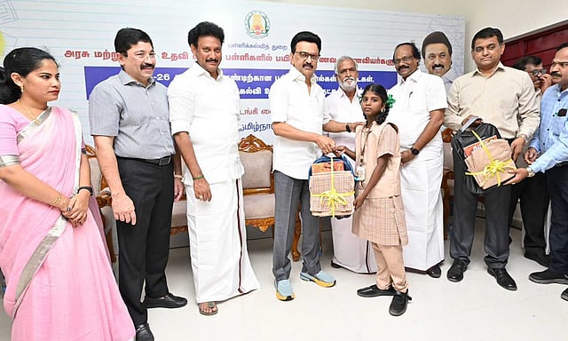Minister of Health and Family Welfare Ma Subramanian distributed educational materials to students in Manthope Corporation Girls Higher Secondary School, Saidapet, on Monday. According to official sources, for the academic year 2025-26, study materials worth Rs 311 crore, 4.30 crore textbooks worth Rs 457 crore, 1.30 crore uniforms worth Rs 462 crore, 9.6 crore notebooks worth Rs 162 crore and other equipment worth Rs 211 crore (Rs 1,141 crore total) are to be distributed.