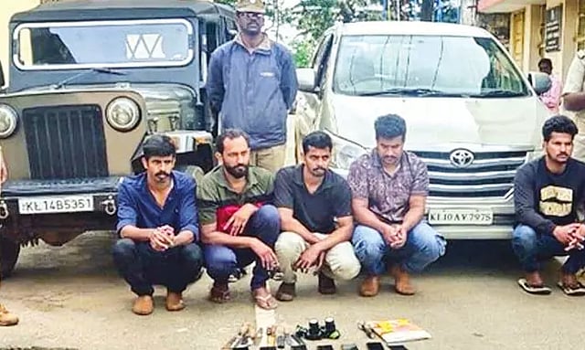 They were identified as Jobin, 28 from Pandalur, Jemzir, 37, Jijo, 30, Jibin John, 30 and Mohammed, 33, all from different parts of Kerala. Officials said they are on the lookout for a few more persons involved in the poaching racket.