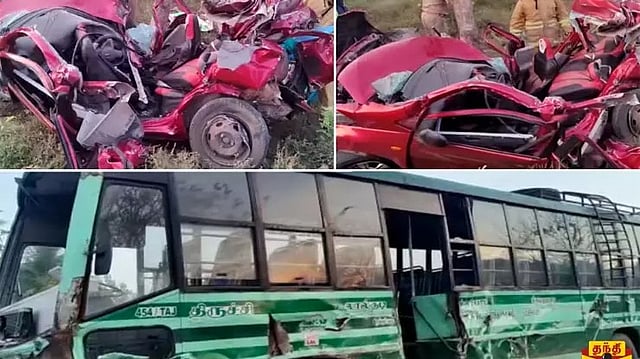 CHENNAI: Four people travelling in a car met with an accident when a government bus collided with a car on the Avatti joint road near Tittakudi in Cuddalore district.