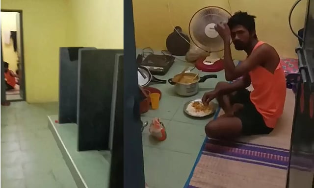 After the video of two workers living and preparing food in a room in the toilet premises went viral, the civic body authorities shifted them to a different accommodation.