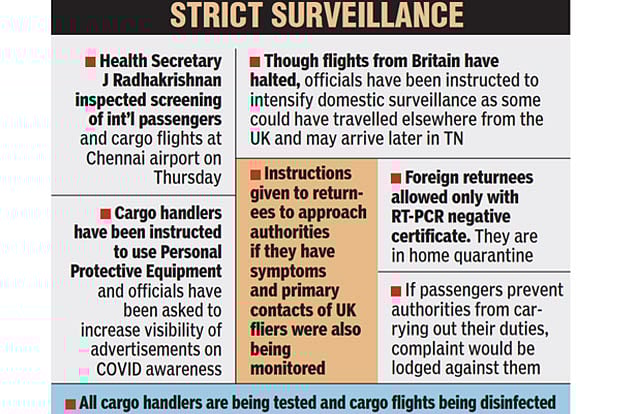 Three people who arrived from Delhi allegedly did not cooperate with public health authorities and they proceeded to their destinations claiming they tested negative. They were, however, subsequently traced and placed under isolation. If passengers prevent authorities from carrying out their duty, a complaint would be lodged against them with the police and action initiated, Radhakrishnan said. On Wednesday, five other people who had travel history to the UK were tested.