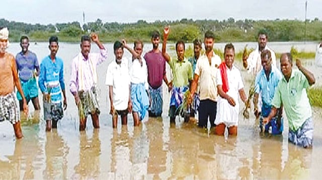 Since there was heavy rains, the 20 to 40 days old samba nurseries submerged at Tiruvaiyaru, Vilangudi, Punavasal, Villiyanallur and the adjacent areas. Similarly, the heavy rains at Buthalur areas had submerged the paddy at Vendayampatti and Kotrapatti areas.