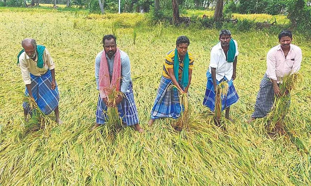 The yield was affected because of the damage due to the sudden rainfall. Observing that the usual yield used to be 2400 kg of paddy per acre, the farmers estimated the yield to be only 1,800 kg of paddy per acre this year. The farmers said that the sudden rain along with the heavy wind, damaged around 2,000 acres of standing crops in Valamarkottai, Puthur, and Udayarkovil in Thanjavur and demanded compensation for the yield loss.